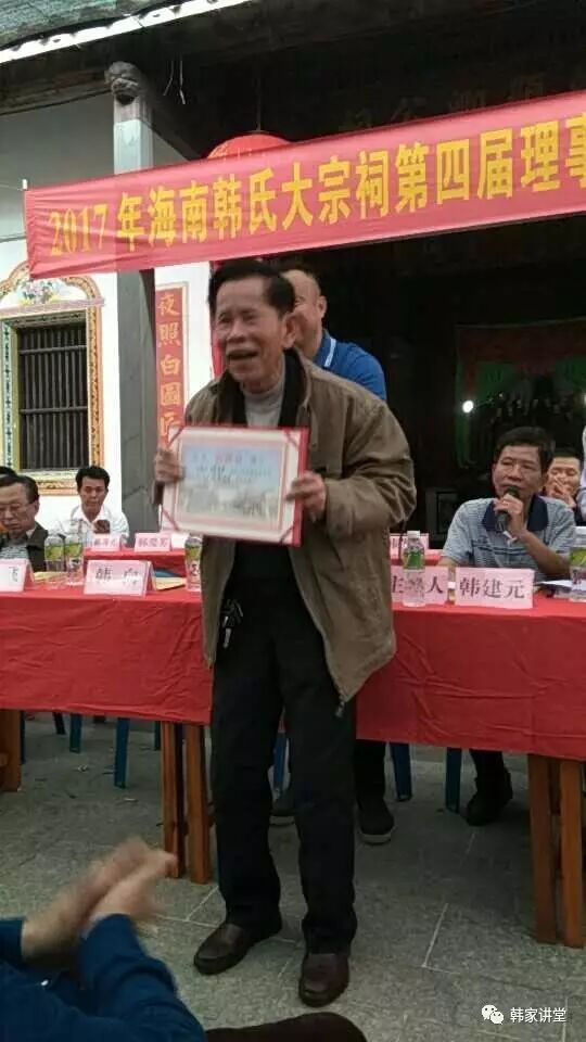 会议还向为海南“韩氏大祠堂”作出重要贡献的宗亲颁发了证书。