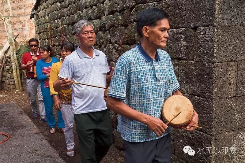 9、由家至公庙还有长长的距离,乐队吹鼓着。大家跟着,一块走。
