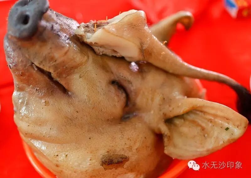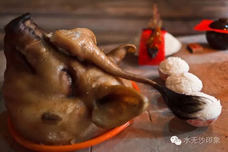 3、特制的猪头和猪尾,供在厅中供桌上,意味着“有头有尾”。