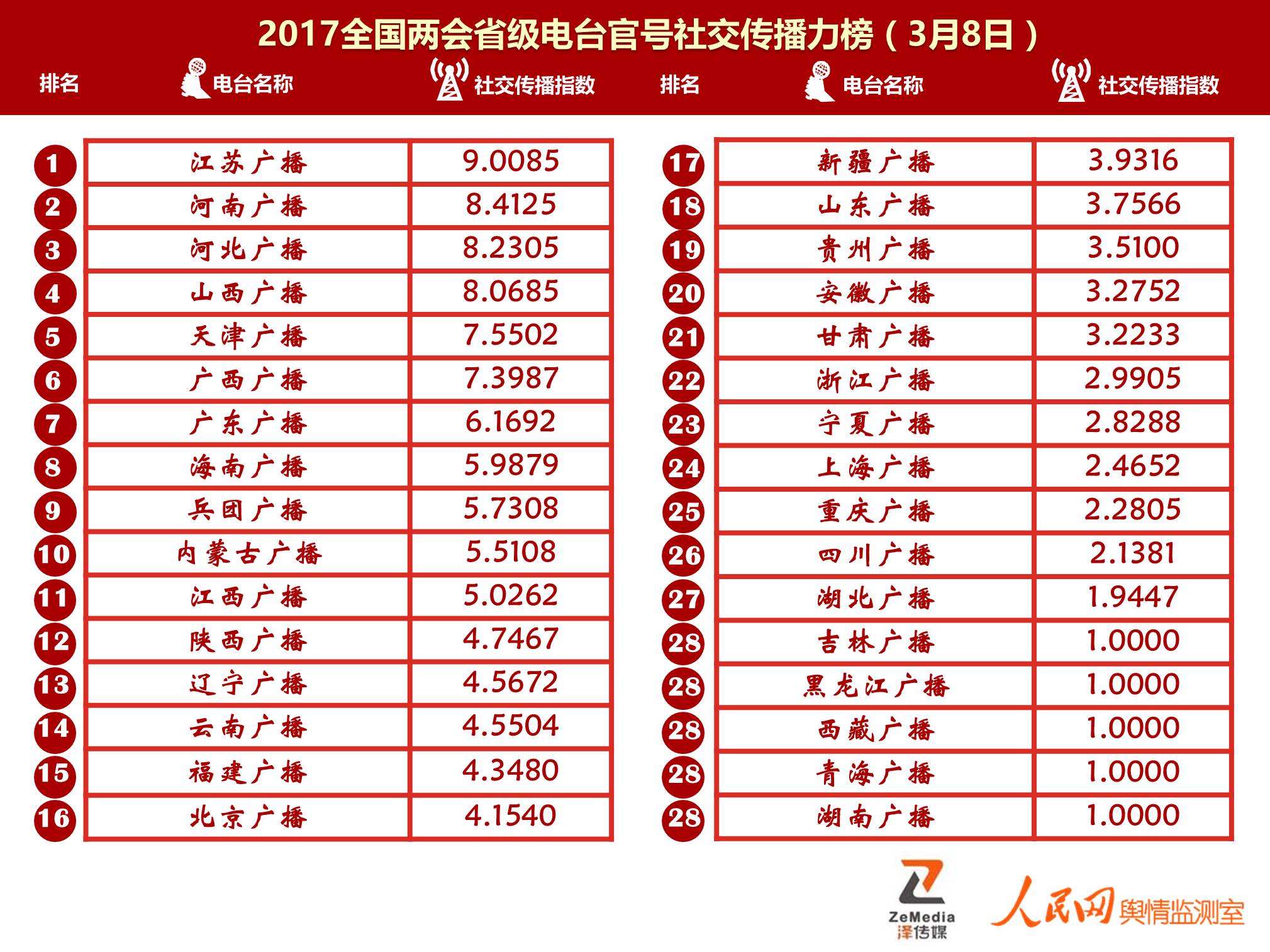 省级电台官号社交传播力榜针对电台及新闻频率(未开通新闻频率的,,具体考核指标由省级电台官方微信微博指数、、、习式热词指数构成,旨在客观呈现省级电台官方微信微博账号的影响力与传播力。榜单由国内传媒行业大数据监测与专业研究机构——泽传媒携手人民网舆情监测室联合推出,此前泽传媒-人民网曾连续三年发布国内电视媒体全国全网传播指数。除全国省级电台社交传播榜外,,泽传媒还将陆续发布客观反映全国省级电视全网传播融合力、省级党报社交传播力的相关榜单,敬请关注。