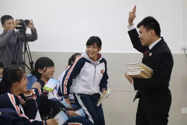 干警为抢答问题正确的学生发放纪念礼品↓↓↓