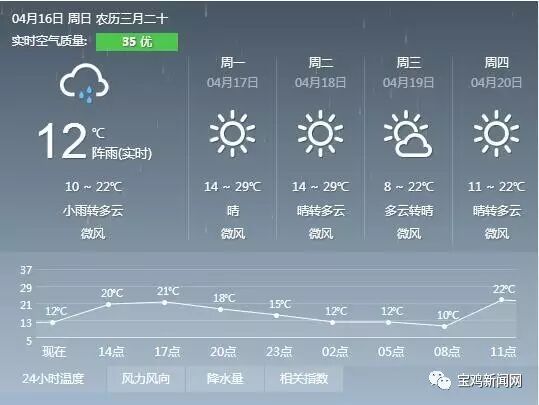 【宝鸡天气即将来启盛夏模式】市气象台消息,本周末,我市降水将停止,下周起进入“盛夏模式”,最高气温逼近30℃,提醒户外作业人员注意防暑降温。