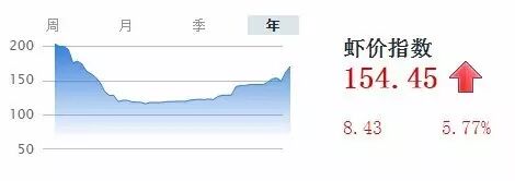 | 中国虾价指数 | 154.45点 | 187.16点 | 136.86点 | 191.99点 | 79.19点 |