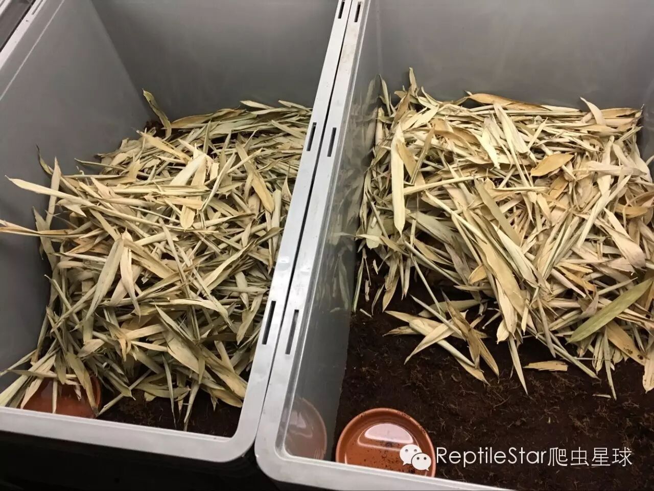 饲养箱的垫材Jam推荐竹叶或者水苔,它们的优劣都很明显: