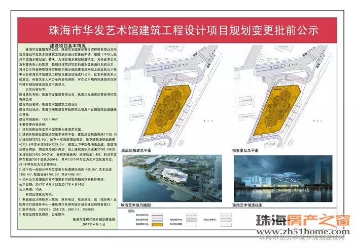 据了解,珠海艺术馆建筑主要变更内容说明如下:1、项目名称由华发艺术馆变更为珠海艺术馆;2、建筑外轮廓及建筑造型基本保持不变。建筑总面积由原来71108.13㎡增加到72732㎡,地下一层局部增加夹层,地下建筑面积由原来40312.8平方米增加到41279㎡,首层上下中空处增设走道,首层增加部分夹层,四层增加部分夹层,地上建筑面积由原来30795.3㎡增加到31453㎡。容积率由原来1.38增加至1.468。机动车位停车数由738个变更为526个。其中315个停车位为艺术馆配套车位,211个停车位为社会停车会;3、地下负一层部分停车位变更为配套便民商店1485.9㎡,艺术品店1485.9㎡,配套设施1796.5㎡,共计4768.3㎡。