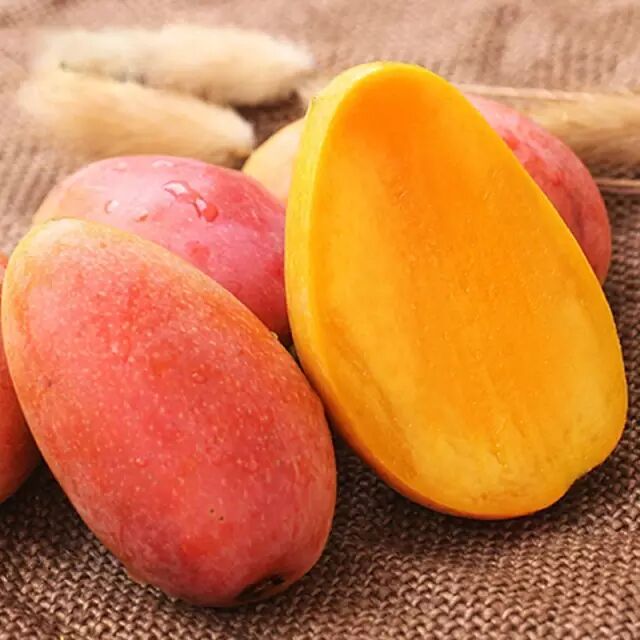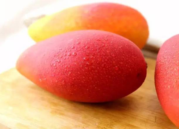 剥开贵妃芒鲜艳而又薄薄的外皮,汁水不断的滴落