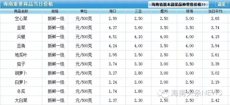 海南价格网9月22日部分菜价公示。