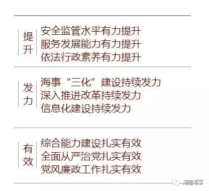 、新战略为指导,以“四个交通”、海事“三化”建设为统领,,各项工作取得了可喜的成绩,主要表现在“三个有力提升”“三个持续发力”和“三个扎实有效”九个方面: