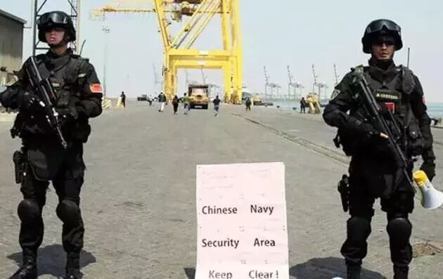 与此形成强烈对比的是,35年以后,在也门亚丁港,海军特战队员进行警戒,标牌上写有“Chinese Navy Security Area. Keep Clear!”字样英文,翻译成汉语大意是“这里是中国海军领域,闲人勿近!”
