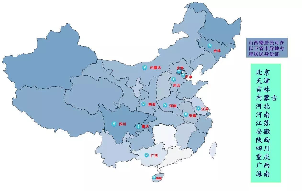 日前,为回应广大网友“山西省居民是否可以在外省跨省异地办理居民身份证”热烈关切,,获悉:目前,我省户籍居民可以在北京、内蒙、 天津 、河北 、吉林、 河南、 安徽、 海南、 广西 、重庆、 江苏、四川、陕西。