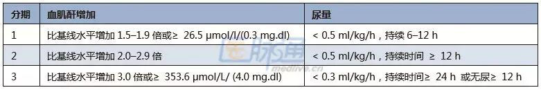 AKI诊断标准主要基于血肌酐升高和/或尿量减少,具体如下: