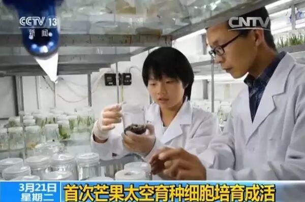 神舟十一号载人飞船去年带入太空的芒果幼胚细胞,遨游太空33天,近日在海南实验室内成活,并长出全新的组织,这是世界首次进行芒果的太空育种试验。