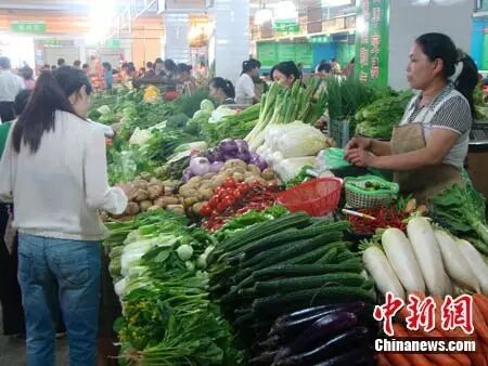 资料图:海口一家蔬菜市场里,市民在购买蔬菜。 王子谦 摄 来源:中国新闻网