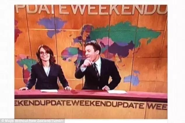 “美国综艺《周六夜现场》,背后的大屏幕上放了一张世界地图,很显然,上面没有新西兰...”