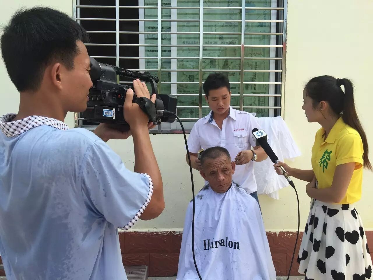 美发师夏建强告诉帮女郎:“为爷爷理发是一件幸福的事,心里暖暖的,以后会经常来。”