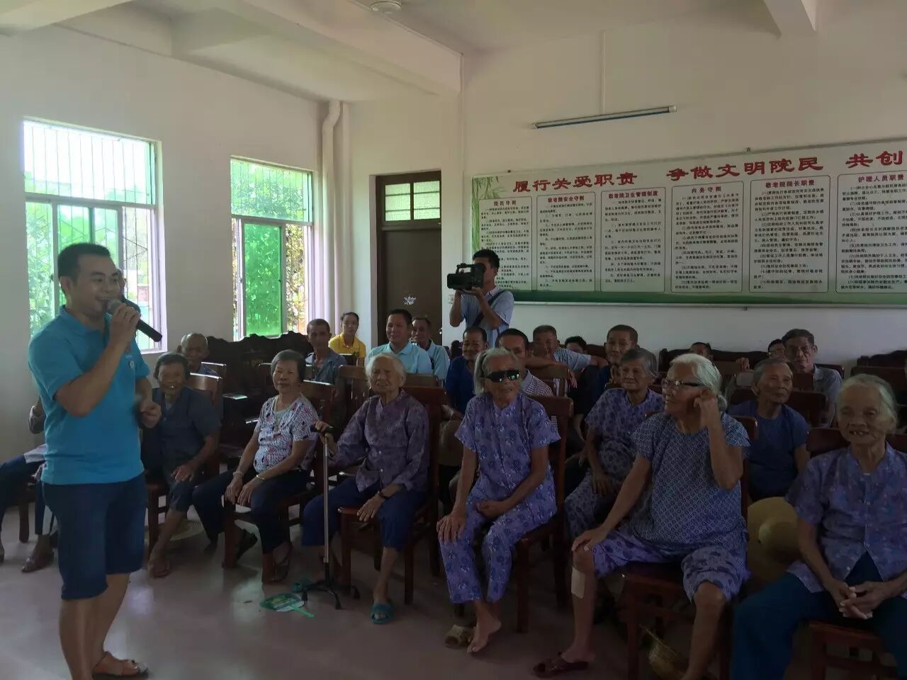 海南乐善义工社杨清魁主持节目,他说:“在中秋节这样一个特别的日子里,能为老人家表演节目感觉很高兴,看到老人笑出来,我内心也很欣慰。”