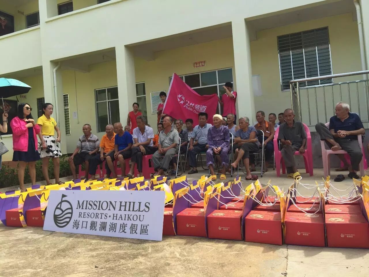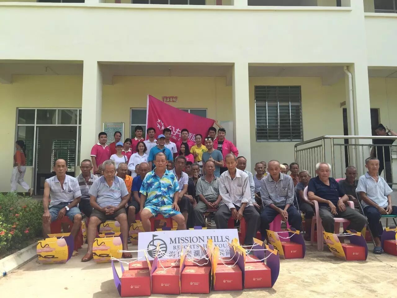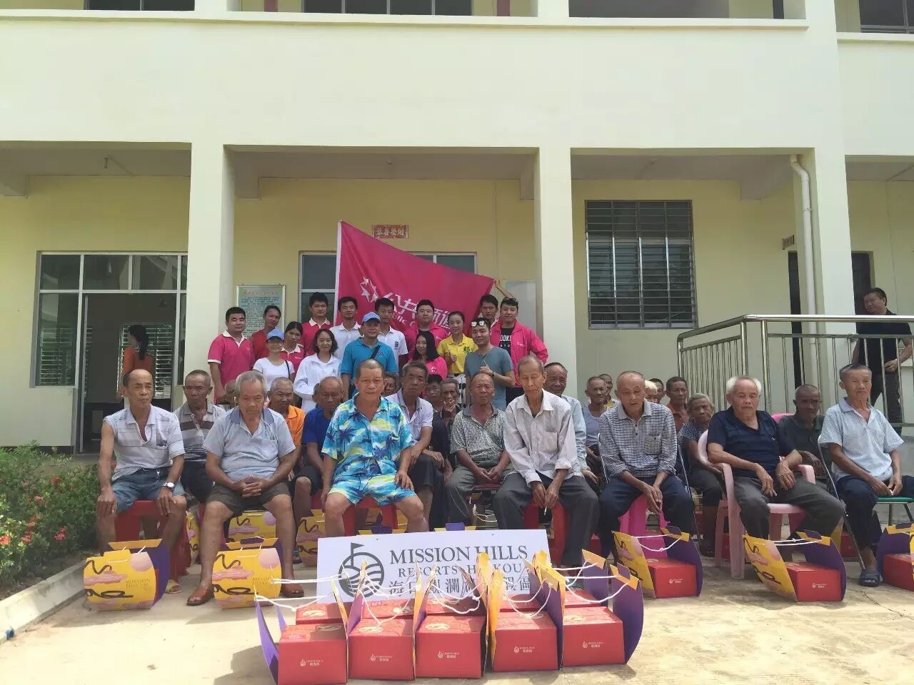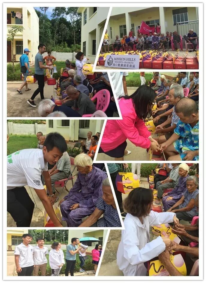 第一时间把由海口观澜湖旅游度假村提供的月饼分发给每位老人。