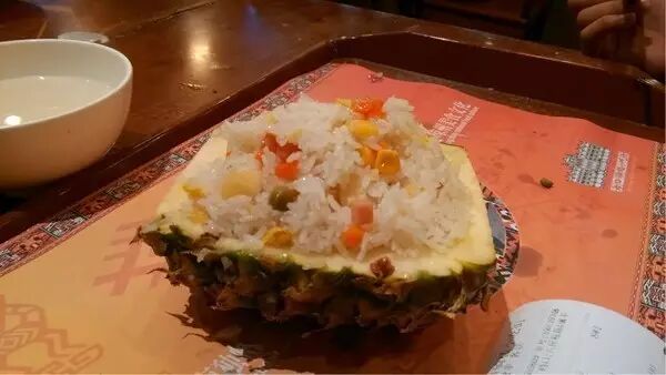 菠萝饭,内地很少见。衡阳人口味偏辣,想象中水果和饭混在一起,不会很甜么?不知道吃不吃得惯,但尝试一下总不会有问题。