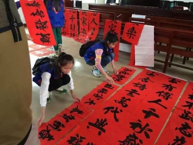 此外青年书法家们也做好了准备工作,满副热情的志愿者们为书法家们拉好春联纸,协助共同完成工作。扶贫之乡的乡亲父老们纷纷到来登记领取,乡亲父老面带笑容乐呵呵,大夸青年书法家们的字,字体大方,财源滚滚,贴着大大方方发大财。志愿者们小心翼翼的将春联放置来晾干,细心的做好每一步送到村民手中,井然有序,按照登记的名字来领取,其乐融融!记观察,写的最多的一副春联“人和家顺百事新,富贵平安福满堂”。村民希望和和气气过日子,就是所谓的安康,促进乡村和谐发展。人民幸福才是党最大的期望。