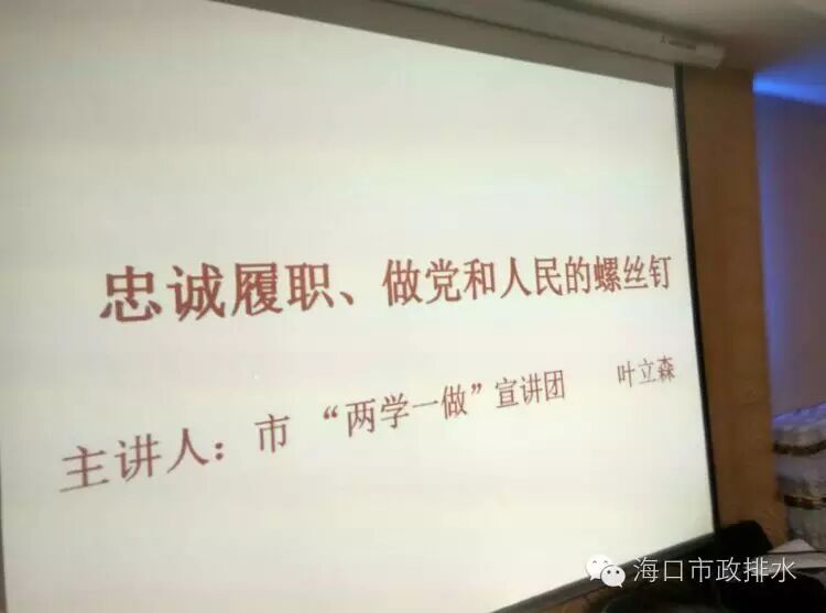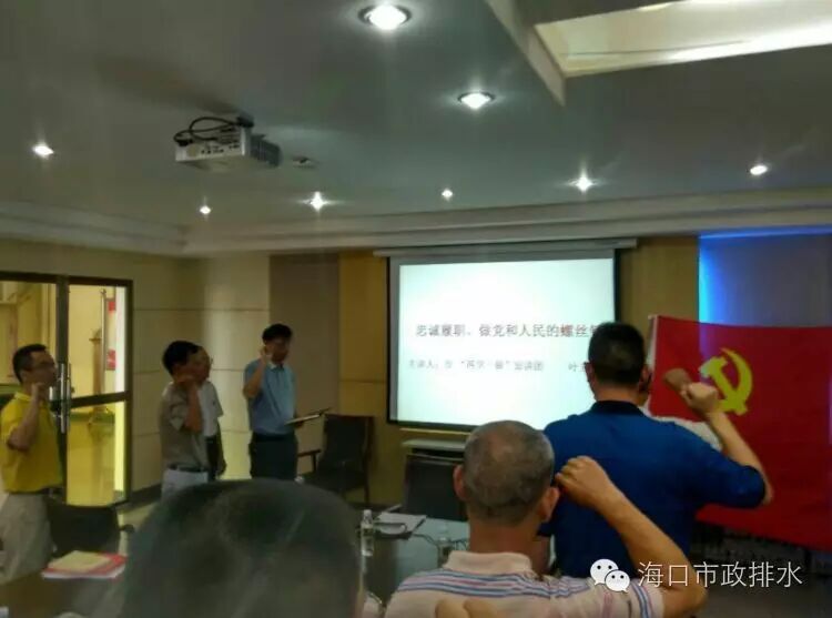7月1日,在中国建党95周年之际,市政管理局排水所党总支组织全体党员,邀请市“两学一做”宣讲团成员叶立森给大家做题为《忠诚履职、做党和人民的螺丝钉》专题讲座,重温入党誓词。在讲座中,叶立森老师紧密联系我所先进党员典型陈清琪、卢修学、欧雄的感人事迹进行感人肺腑的深入讲解,使全体党员受到一次很好的党性教育。