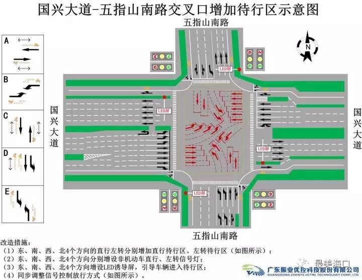 海口交警介绍,国兴大道是海口市最主要的交通干道,随着海秀快速路开通和日月广场投入运营,国兴大道交通流量飞速增加,早晚高峰期多个路口的交通流已达到饱和状态。因此,,考虑在国兴大道-五指山南路交叉路口试行全待行和机非同放放行模式。