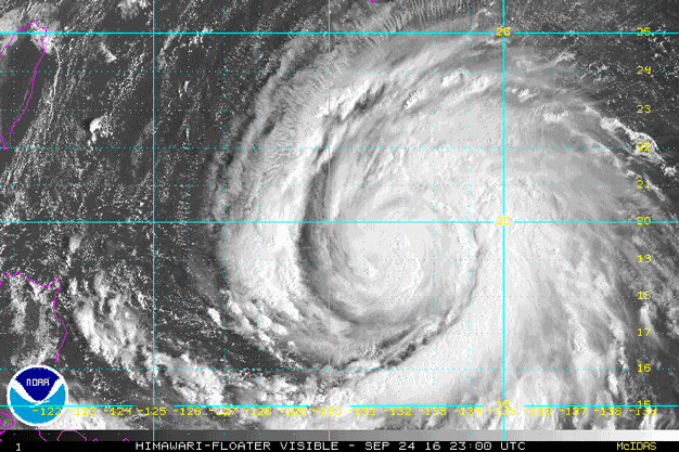 2016年09月28日02时(北京时)第1618号热带风暴(暹芭)的中心位置在北纬14.6度,东经150.0度,中心气压998百帕,近中心最大风速18米/秒。