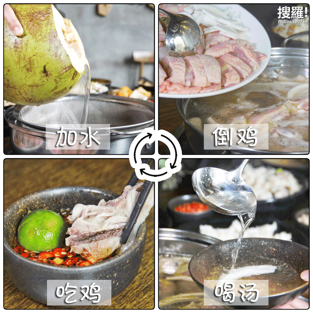“加椰子水→下文昌鸡→喝汤→啃鸡肉→加单→再加椰子水→再下文昌鸡……”,无限循环,只管敞开肚子开吃,也不用担心钱包。