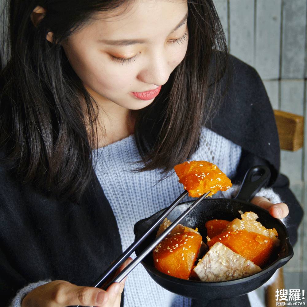 不得不提的是这里的羔烧双宝,它是潮汕餐桌上不可少的饭后甜点。熬煮热的糖浆加入芋头和地瓜,撒上芝麻,刚刚好的甜,很多人都因为这个被圈粉。