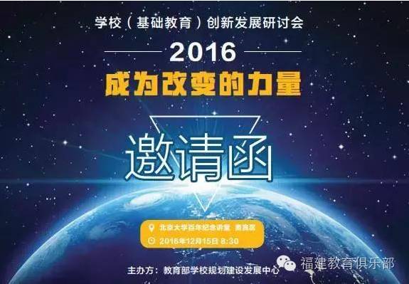 为推动基础教育学校创新发展,探索核心素养时代的学校发展模式和未来学校的创建模式,2016年学校(基础教育)创新发展研讨会。