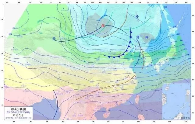 18日08时,冷高压主体位于中西伯利亚,冷空气前沿影响到内蒙古中东部、东北及华北大部。中原地区及长江以南地区位于高压底部,气压场较弱。