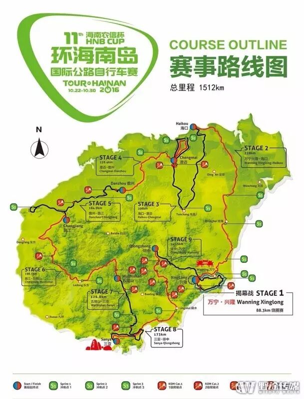 比赛从万宁兴隆旅游度假区出发后,沿海南岛总体呈现逆时针形态行进,9个赛段依次为: