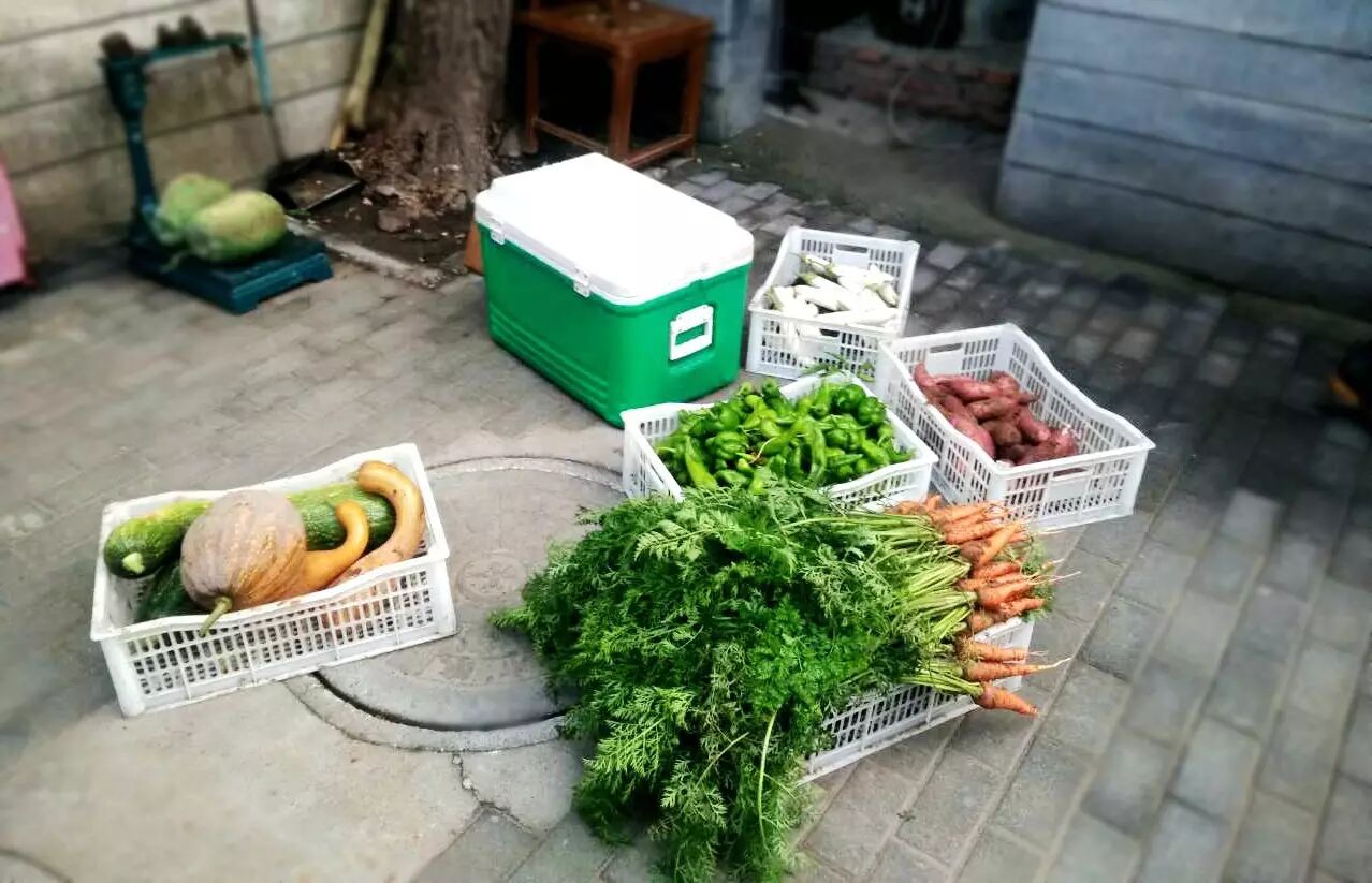 一早,去田里采收蔬菜,准备在市集上售卖。师傅们帮忙一起采收、摘菜、装菜。今天的市集在崇文门,人不是很多,但是遇见了沃翠源一家,很开心。耕读书院学生二年级时开始进入运营模式,要参与各个部门的工作。