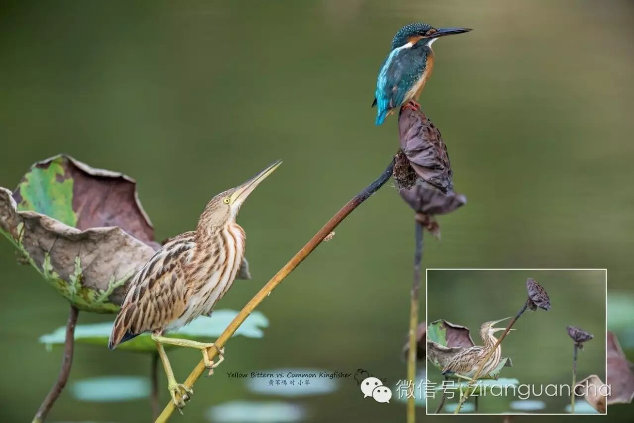 看着停在枝头的小翠,这只黄苇鳽也会有非分之想。可它也不想想,它的一举一动引起的颤动是直接传到荷叶尖儿上的。小图是连拍的下一帧。(翠:小样儿!以为别的鸟也和你一样傻吗?)