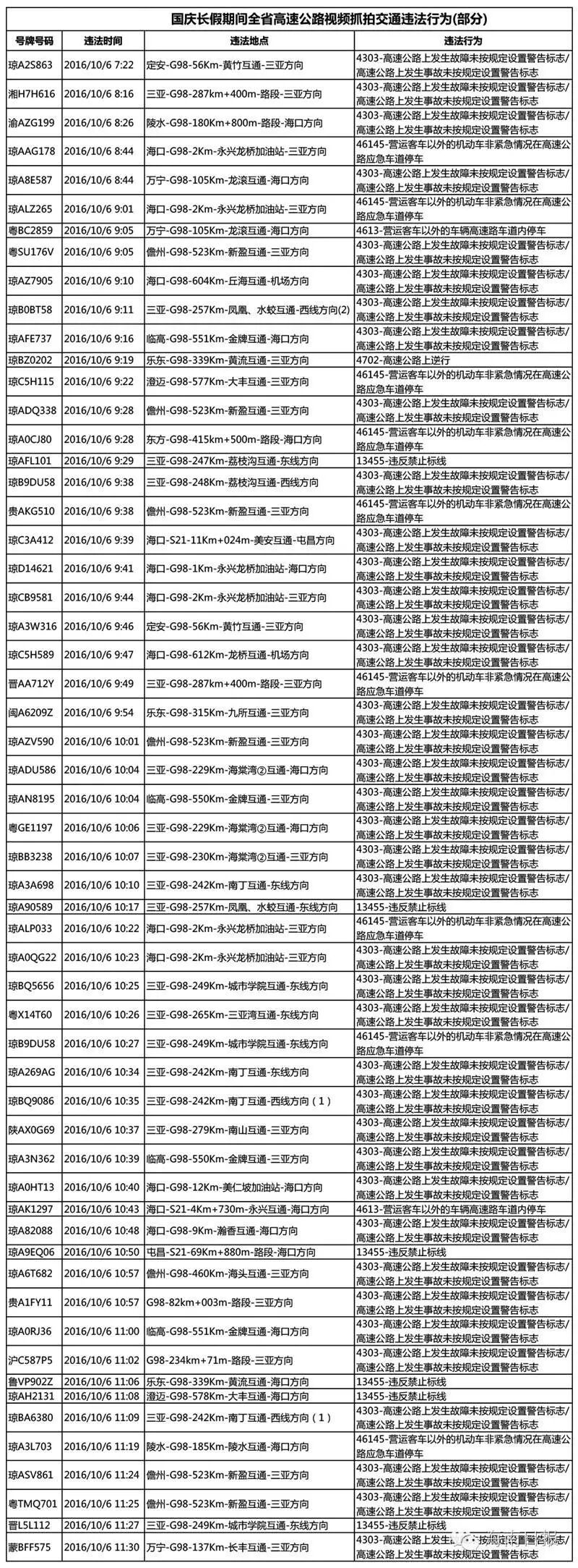 高速路上遇堵,一些车辆选择占用应急车道上通行,一些车辆不按规定车道行驶、逆行。为警示广大驾驶人,震慑交通违法行为,海南省公安厅交警总队公布国庆节期间全省高速公路部分视频抓拍的占用应急车道行驶、非紧急情况下占用用应急车道停车、倒车和逆行等节日显见、多见交通违法行为,以教育引导广大驾驶人自觉守法出行、文明出行。