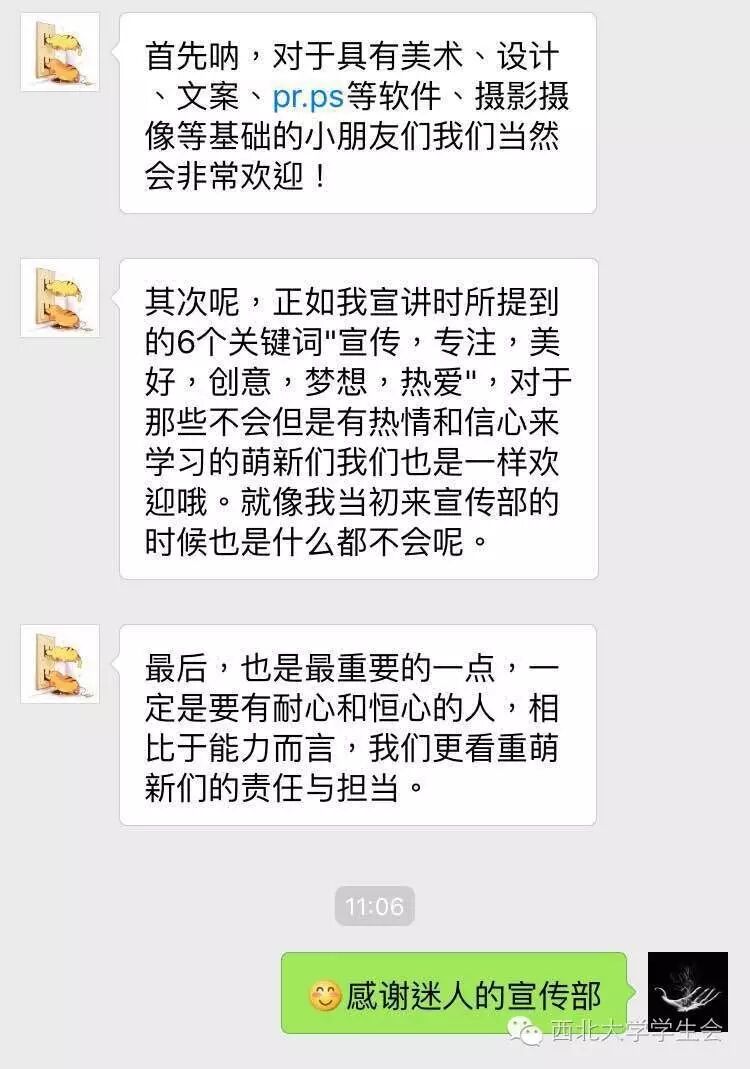 (你没看错——就是军训时心心念念的“及时雨”学长~)▶关键词:认(zhi)真(yao)踏(shi)实(xiao)毅(xian)力(rou)(恩…懒洋洋?懒羊羊?其实实践部最勤奋啦~部长是枚学霸哥喔~)(部门里的颜值担当——范学长:我就问你萌证件照能这么美吗??)▶关键词:踏实 守信 谦虚(我就是喜欢做幕后英雄)(当当当!据说权小益会给面试的小鲜肉供上海南“大特产”一份(*`▽´*))(女生部~招的不只是女生喔~部长多炫酷~来了就知道!)(微信后台运营管理者~多彩绚丽~男友力MAX的技术网宣~)嗯哼?