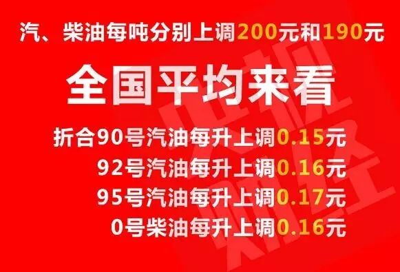 记者刚刚从国家发改委获悉,此次油价调整具体为:汽油每吨将上调200元,柴油每吨将上调190元,创下年内最大涨幅!