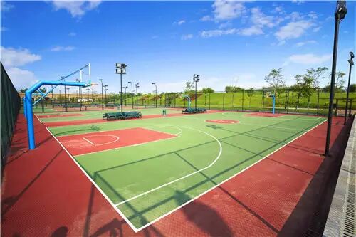 宽敞的网球场,多多的篮球架