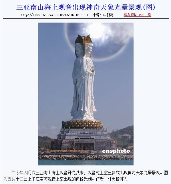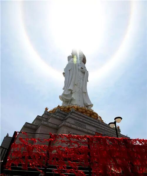 经过腾讯佛学小编不仔细梳理,自2005年四月底三亚南山海上观音开光以来,观音苑上空已多次出现神奇天象光晕景观。