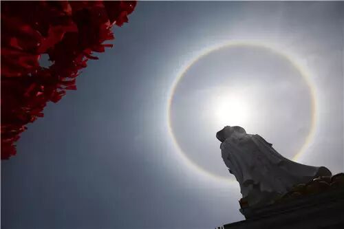 看到日晕的幸运信众,情不自禁地欢呼雀跃,争相拍下这罕见的奇观。菩萨无相、无所不相,心生则种种法生、心灭则种种法灭。