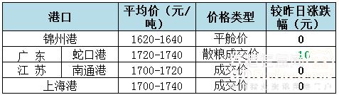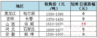 注:山西、河北、安徽价格为2016/17年度容重为二等以上水分14%新玉米理论折干价,但个别指标超标;黑龙江、吉林价格为轮换陈粮玉米价格,以质论价;港口价格为2015/16年度容重为二等以上水分14%新玉米理论折干价,但个别指标超标。