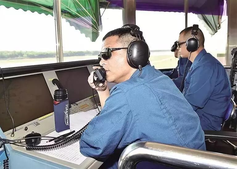 南海舰队航空兵部队官兵进行塔台指挥。 海南日报记者 张茂通讯员 高宏伟 摄