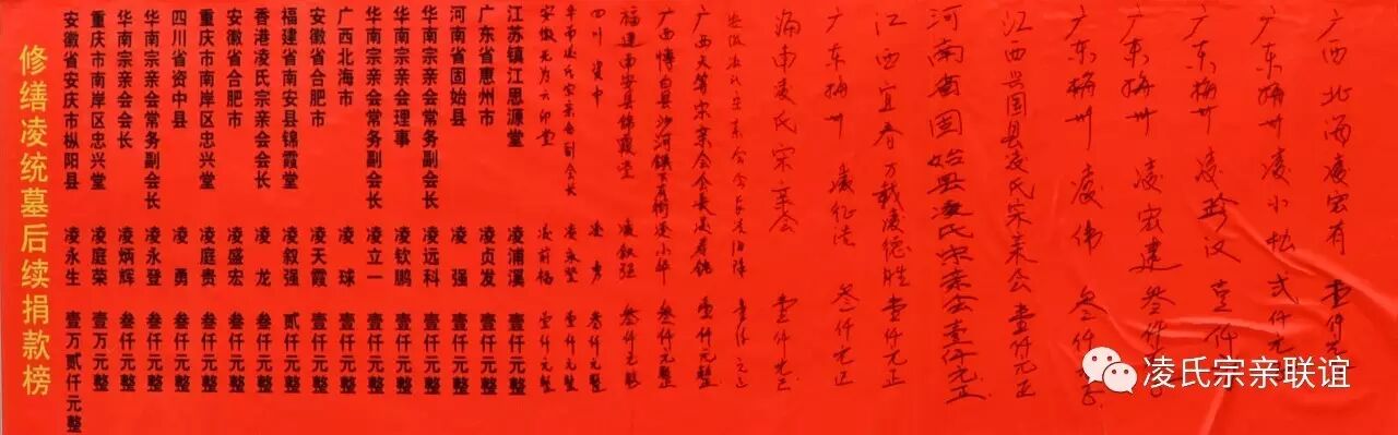 安徽凌氏宗亲会会长 凌海珠 壹仟元整