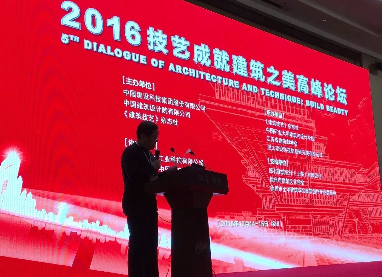 2016年12月14日,第五届中国建筑设计院建筑技艺年度会议——“技艺成就建筑之美高峰论坛”在江苏徐州云泉山庄举行,华元院卢辉响副院长、李海等一行作为常务理事代表受邀参加了本届全国建筑师年会。