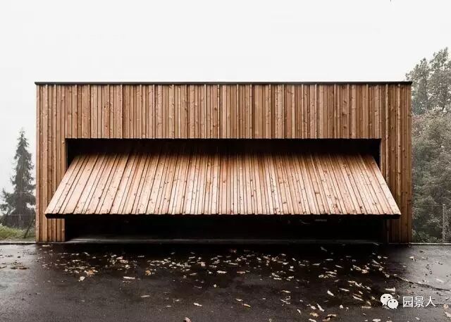 这是一个坐落在半独立式花园别墅内的后院里的小型工具间和车库。建筑由四个块大型木质面板组成,巨大的屋顶与建筑的轻巧的体量构成鲜明对比。它简约的型态与周边的自然和树木息息相关。尽管被建在了花园中,建筑的存在也并没有破坏周边的景色,而是为环境中所需的设备补充了存储空间。