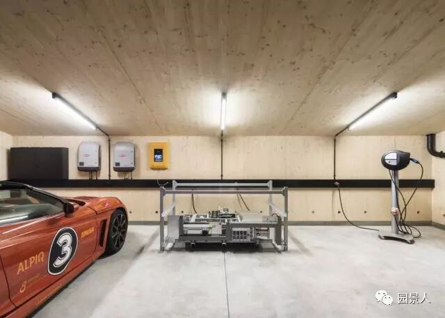 融入大山中的瑞士罗维奥的太阳能车库: