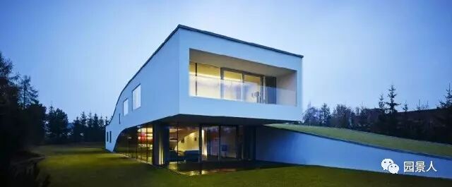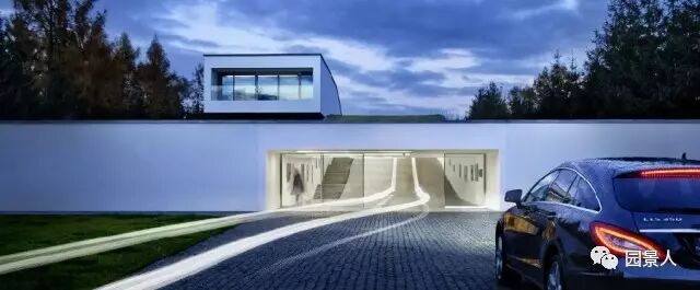 这座位于波兰中部的豪宅,可以一口气将汽车开入室内,可以说建筑主入口的设计是专为汽车服务的,通过一个画廊似的缓坡通道,汽车直达室内,让其成为家庭中的成员之一,看上去颇具未来色彩。
