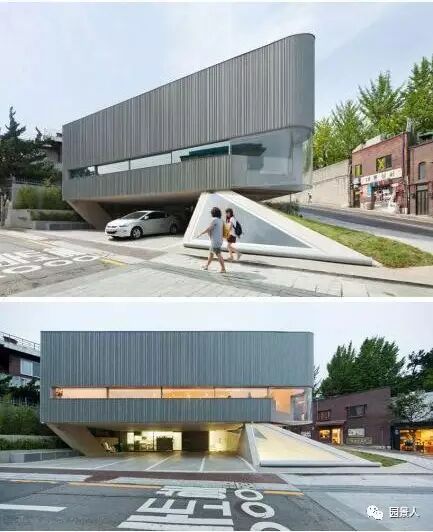 韩国首尔mass studies设计的songwon艺术空间。地上11米、地下8米,首层的架空层作为停车场及入口。
